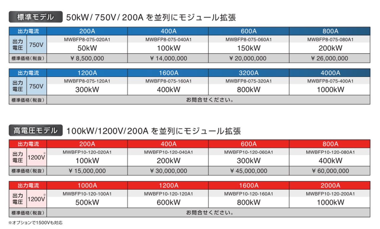 - 50kW単位で最大1000kWまで幅広いラインアップ