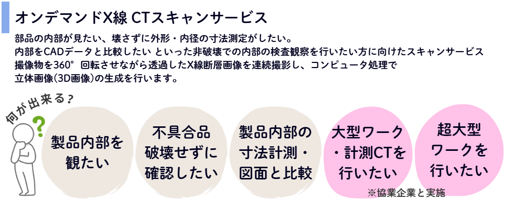 | 大型ワークCT | 要相談 | 1,000mm | 1,340mm | 100kg |